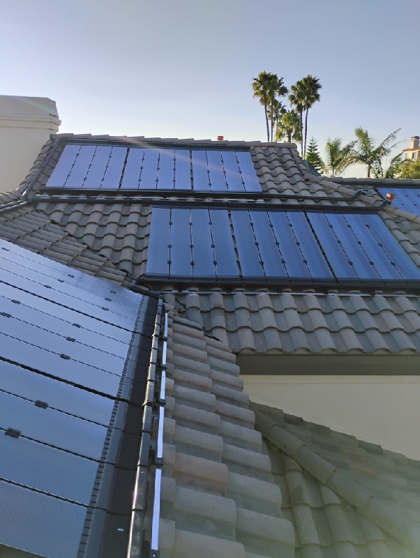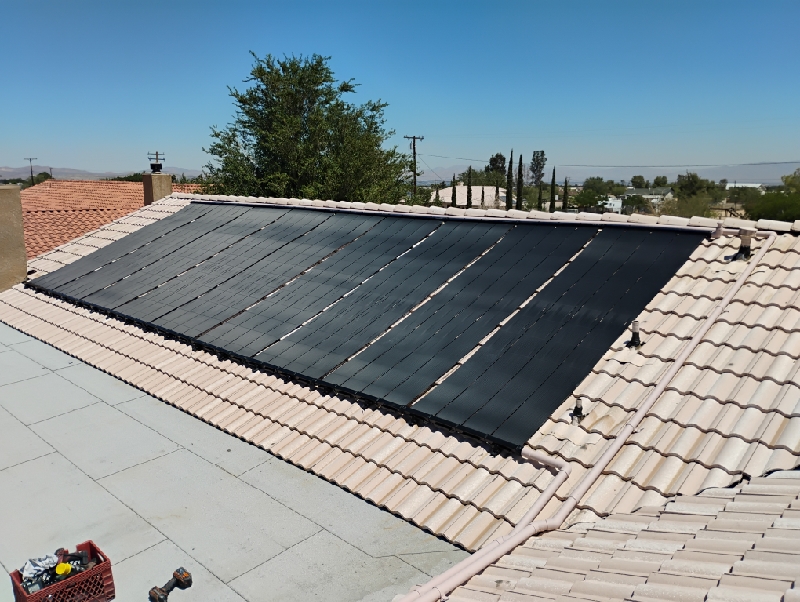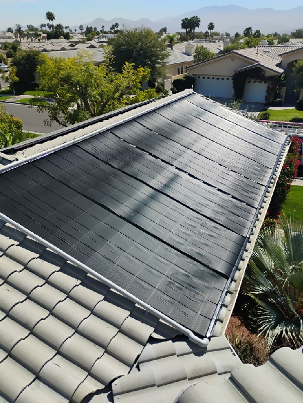 Solar pool heating system on tile roof